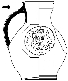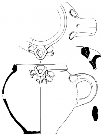 Pot 3-1fPot à base plate et col tronconique. Sa lèvre est triangulaire et pourvue d'une large anse plate. Les parois de ce récipient sont généralement fines, et son encolure est proche de celle du pot 28-7.