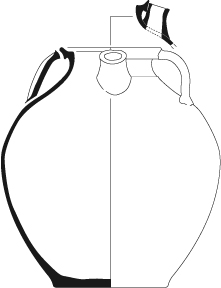 Pot 3-1hPot à base plate ou lenticulaire et col tronconique court, achevé par une lèvre simple et munie d'une anse plate.