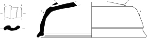 Pot 3-13Pot à base plate parfois évasée et panse ovoïde. Son col vertical ou légèrement tronconique s'achève par une lèvre arrondie peu développée sur laquelle est fixée une anse plate.