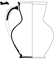 Pot 31-3Pot à lèvre verticale en bandeau, soulignée d'un ressaut interne. Le récipient est pourvu de deux à quatre petites oreilles de préhension opposées. Variante 1 : lèvre courte, jonction externe avec la panse marquée. Oreilles plutôt fixées à la jonction avec la panse. Variante 2 : lèvre plus longue, plus fine, extrémité au parement externe souvent oblique. Oreilles plutôt fixées sur l’extrémité.