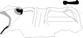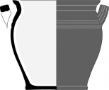 Pot 33-1Pot à base plate et panse biconique étirée en partie inférieure. Il est muni d'une lèvre simple et d'une anse joignant la base du récipient à sa carène. Le vase est perforé au bas de la panse.