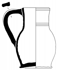 Pichet 20-2Pichet à pied et panse ovoïde. Son col s'achève par une lèvre simple légèrement débordante. Il est muni d'une étroite anse plate.