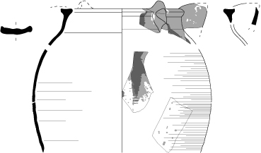 Cruche 5-2Cruche à col terminé par une lèvre carrée débordante creusée d’une gorge sommitale. Elle est munie d’un bec tubulaire et de deux à trois anses plates.