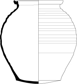 Plat-jatte 7-2Récipient à base plate et parois tronconiques ou cylindriques, terminées par une lèvre triangulaire débordante plus ou moins moulurée. Son parement externe est souvent oblique. Sa lèvre est munie d’oreilles de préhension horizontales. Variante 1 : lèvre nettement moulurée. Variante 2 : lèvre légèrement moulurée.