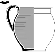 Plat-jatteRécipient dont la forme générale est très évasée, avec ou sans anses, à corps tronconique ou légèrement cintré. Le diamètre d'ouverture est généralement compris entre 2,5 et 5 fois la hauteur générale.