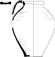 Lèchefrite 2-1Récipient à base bombée, parois courtes et lèvre peu développée. De forme ovale, il est muni de deux manches creux adjacents et de deux becs verseurs latéraux opposés. La partie du récipient réservée à la préhension est surélevée par des pieds tronconiques.