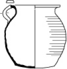 Pot ansé 3-2 (Pot ansé 3b) | Petit récipient cannelé à base concave ou horizontale (1 individu), panse globulaire ou ovoïde et encolure en bandeau, muni d’une anse verticale rubanée dont les points de fixation supérieur et inférieur s’inscrivent respectivement sur la lèvre et sur la zone d’inflexion de la panse.