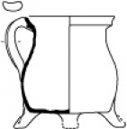 Petit caquelon 1 | Petit récipient tripode représenté par un individu à base convexe, panse évasée et encolure muni d’un manche latéral plein fixé sur l’encolure.